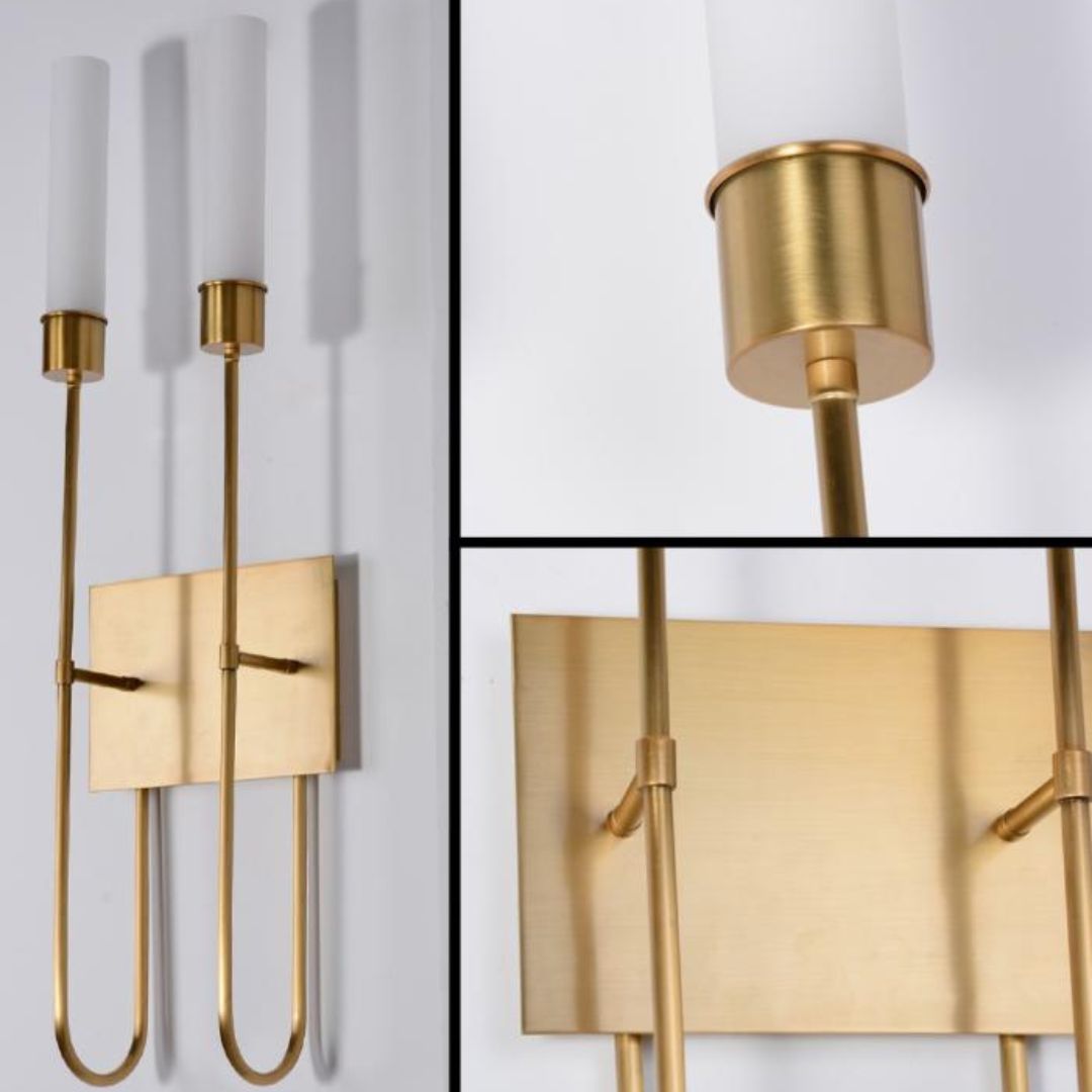 Phần chao đèn dạng ống đứng bằng acrylic mờ được lắp gọn gàng trên đầu thân kim loại, mang lại hiệu ứng ánh sáng lan tỏa đều, không chói mắt. Ánh sáng phát ra dịu nhẹ, tinh khiết, giúp bức tường trở nên sinh động mà vẫn giữ được sự thanh lịch. Thiết kế đôi tạo nên cảm giác cân bằng và nhịp điệu trong bố cục không gian – không quá phô trương, nhưng vẫn thu hút ánh nhìn bởi vẻ sang trọng, tối giản đúng chuẩn nội thất hiện đại.