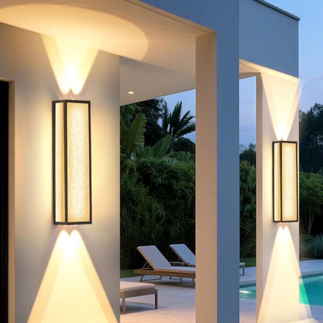 Ngoài ra, mẫu đèn này còn phù hợp lắp đặt tại mặt tiền nhà, ban công hoặc lối đi có mái che. Hiệu ứng ánh sáng đối xứng giúp công trình trở nên nổi bật và cuốn hút hơn vào ban đêm. Khi lắp đặt theo cặp hoặc theo dãy, đèn tường hắt sáng hai đầu tạo nên nhịp điệu ánh sáng đồng bộ, tăng tính chuyên nghiệp cho tổng thể kiến trúc.