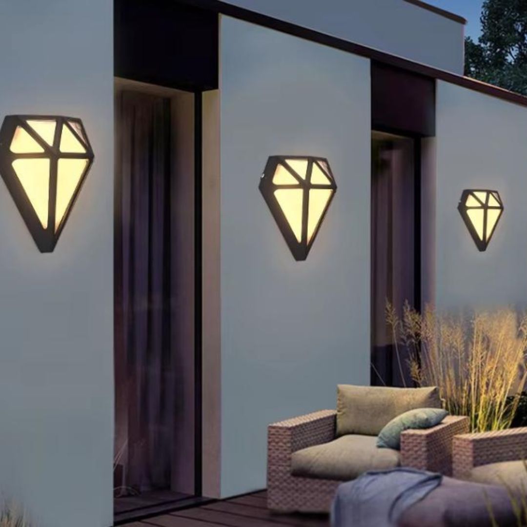 Với ánh sáng dịu nhẹ và kiểu dáng nghệ thuật, đèn tường hình kim cương là lựa chọn lý tưởng để trang trí ban công hay sân thượng. Khi đêm xuống, ánh sáng phản chiếu qua tường sẽ tạo nên khung cảnh lãng mạn, phù hợp để thư giãn hay tổ chức những buổi tiệc ngoài trời nhỏ xinh.