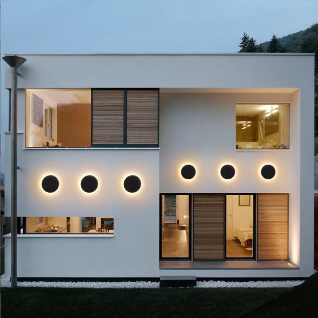 Ở các công trình nhà phố hiện đại, đèn tường led tròn hắt viền thường được sử dụng để trang trí mặt tiền, tường rào hoặc khu vực cổng. Khi lắp đặt theo hàng hoặc theo nhịp kiến trúc, đèn tạo nên hiệu ứng ánh sáng đồng đều, làm nổi bật hình khối tổng thể của ngôi nhà. Ánh sáng hắt viền không quá mạnh nhưng đủ để tạo điểm nhấn, giúp mặt tiền trở nên sang trọng và thu hút hơn vào ban đêm. Đây là giải pháp chiếu sáng vừa thẩm mỹ vừa tiết kiệm điện cho nhà ở đô thị.