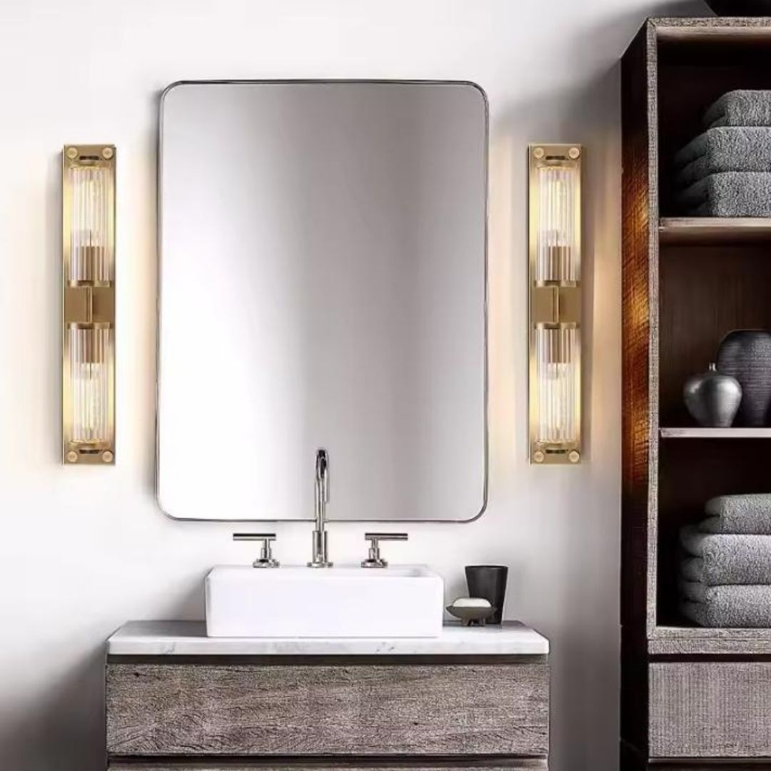 Hành lang và sảnh đón thường là những khu vực cần ánh sáng dẫn lối và điểm nhấn trang trí. Đèn tường trụ đôi thủy tinh sọc đáp ứng tốt cả hai yêu cầu này. Thiết kế trụ đôi xếp dọc giúp không gian hành lang trở nên cao ráo và thoáng hơn. Khi lắp đặt theo cặp hoặc theo nhịp đều, đèn tạo nên hiệu ứng ánh sáng liên tục, giúp sảnh và hành lang trở nên chuyên nghiệp, sang trọng, rất phù hợp với khách sạn, căn hộ cao cấp hoặc biệt thự.