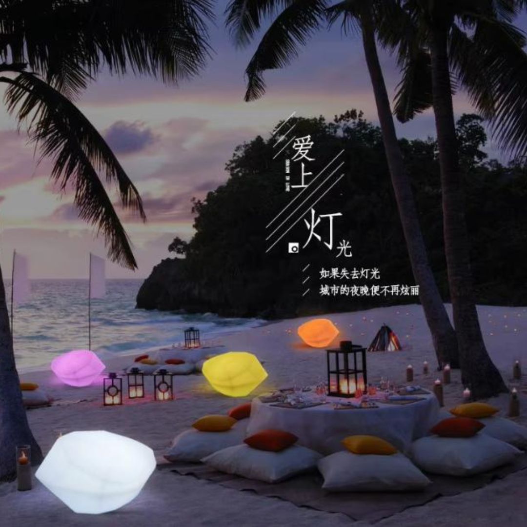 Khi màn đêm buông xuống, từng đèn viên đá LED đổi màu dần bừng sáng, tạo nên khung cảnh lung linh như trong truyện cổ tích. Ánh sáng nhẹ nhàng chuyển màu theo từng nhịp thở của không gian, khiến khu vườn, lối đi hay hồ bơi trở nên sống động và huyền ảo. Mỗi viên đá phát sáng như mang trong mình hơi thở của thiên nhiên, vừa mang tính nghệ thuật vừa tạo cảm xúc thư giãn cho người ngắm nhìn.