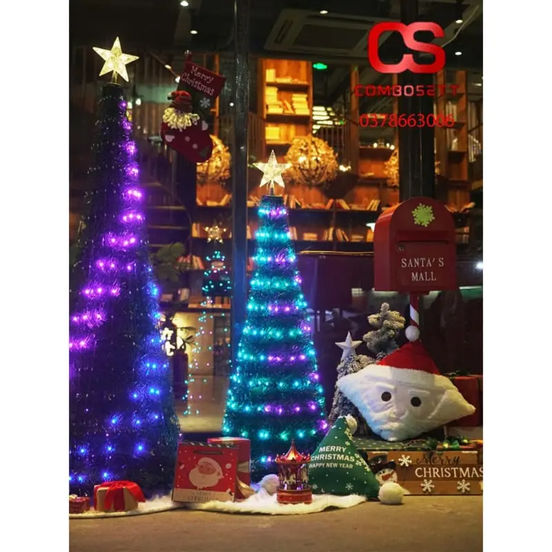 Cây Thông Noel Bằng Nhựa Kèm Đèn Led Điều Khiển Remote và Áp Điện Thoại – Có Thể Gấp Gọn