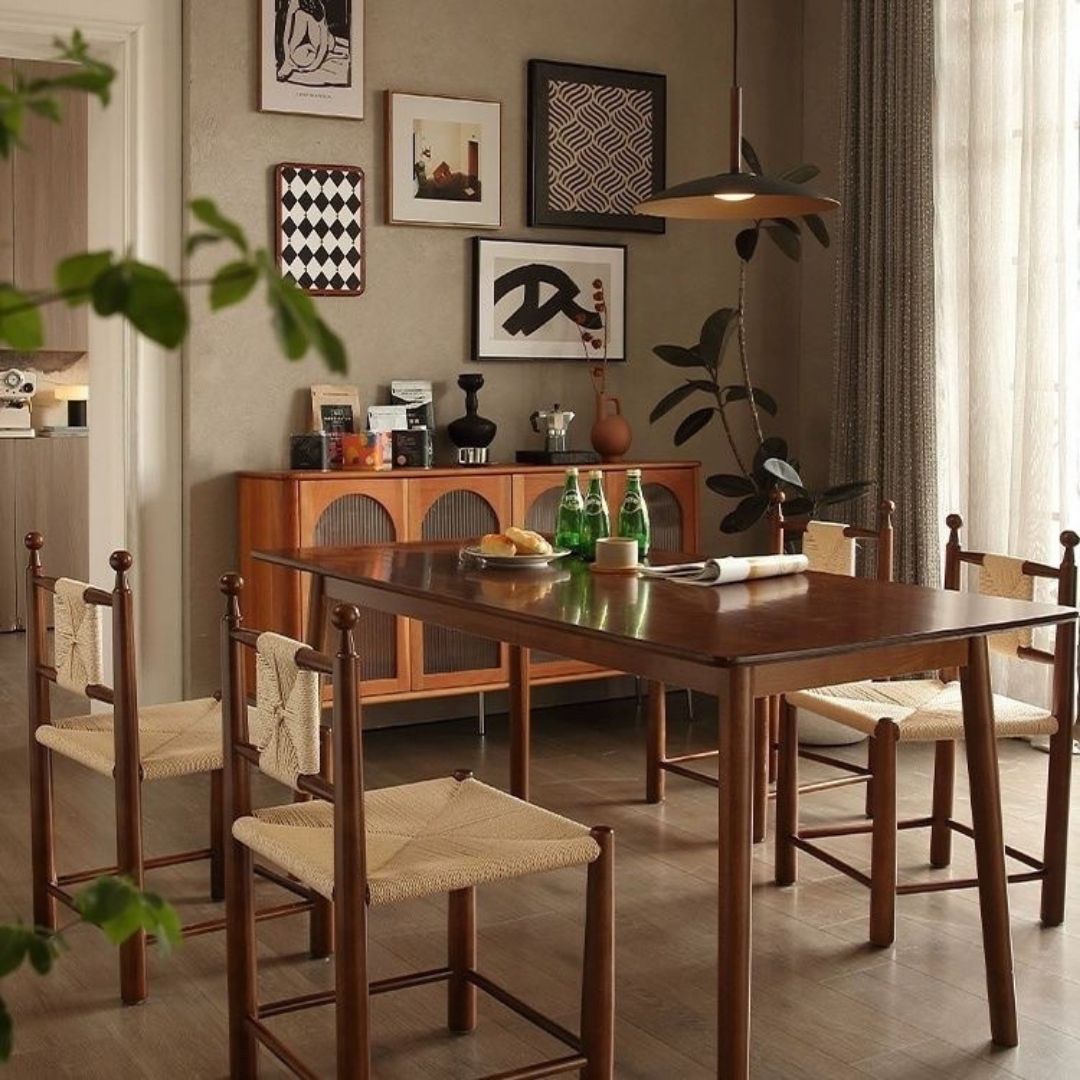 Về mặt thẩm mỹ, ghế ăn dây đan mang vẻ đẹp mộc mạc nhưng không lỗi thời. Dáng ghế gọn gàng, màu sắc trung tính giúp sản phẩm dễ hòa vào tổng thể nội thất, dù là phong cách hiện đại, tối giản hay mang hơi hướng truyền thống.