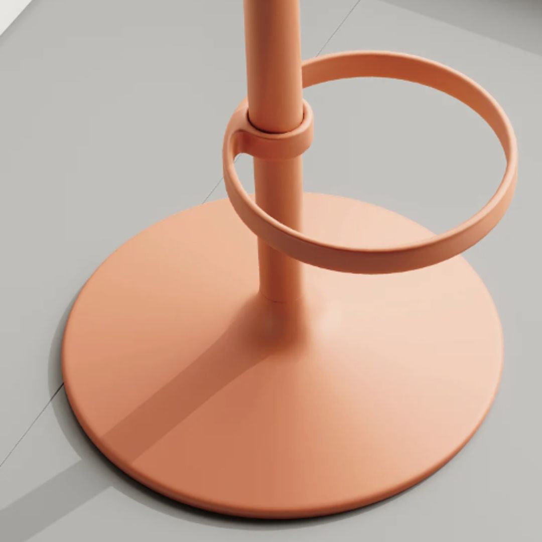 Phần chân ghế dạng trụ tròn chắc chắn, kết hợp đế tròn bản rộng giúp ghế đứng vững trên nhiều loại sàn khác nhau. Thiết kế liền khối tạo cảm giác gọn gàng, liền mạch và rất đặc trưng của ghế cafe phong cách Bắc Âu. Vòng gác chân tròn được bố trí ở độ cao hợp lý, vừa hỗ trợ tư thế ngồi, vừa tạo điểm nhấn hình học nhẹ nhàng cho tổng thể thiết kế.