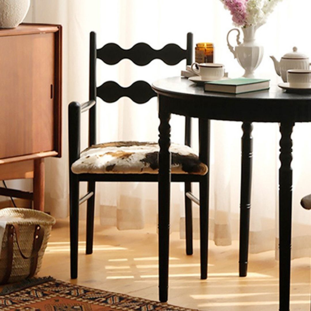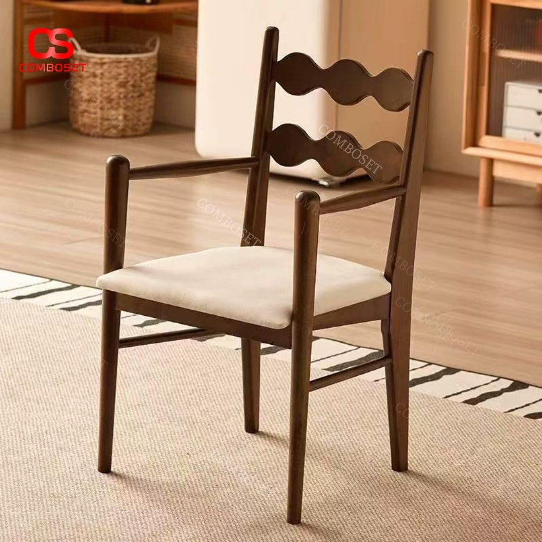 > Ghế Gỗ Cứng Có Tay Vịn, Ghế Tựa Lưng Kiểu Dáng Gợn Sóng