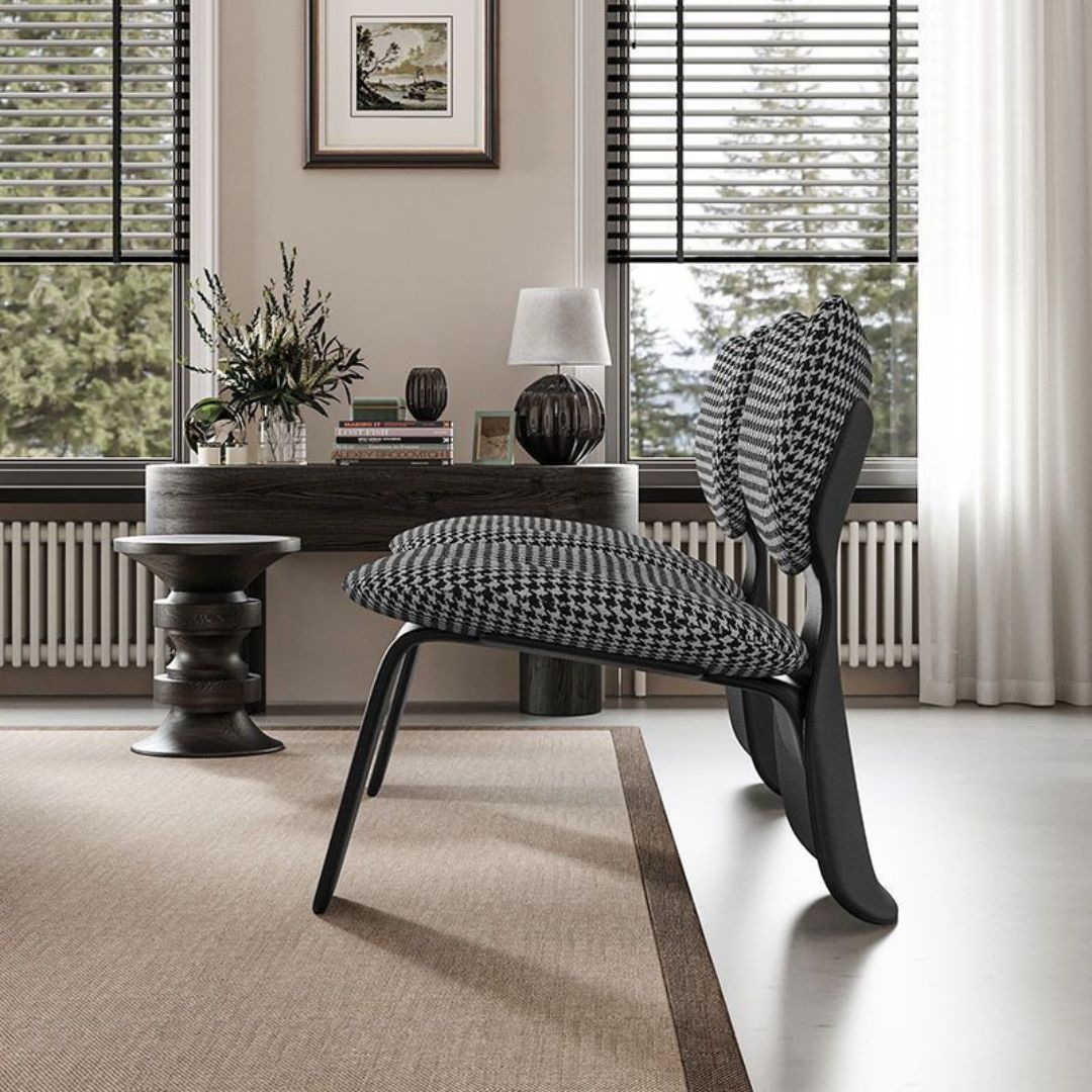Mẫu ghế sofa phòng khách sạn này gây ấn tượng mạnh nhờ dáng ghế mang tính điêu khắc, khác biệt hoàn toàn so với các kiểu ghế thông thường. Tổng thể ghế được tạo hình như một khối nghệ thuật đặt trong không gian, vừa có chức năng sử dụng, vừa đóng vai trò decor nội thất. Phần tựa lưng cong mềm, mở rộng sang hai bên như cánh, tạo cảm giác ôm trọn lưng người ngồi. Thiết kế tựa lưng cao vừa phải, cong nhẹ về sau giúp nâng đỡ lưng trên và vai, mang lại cảm giác thư giãn rõ rệt khi sử dụng lâu.