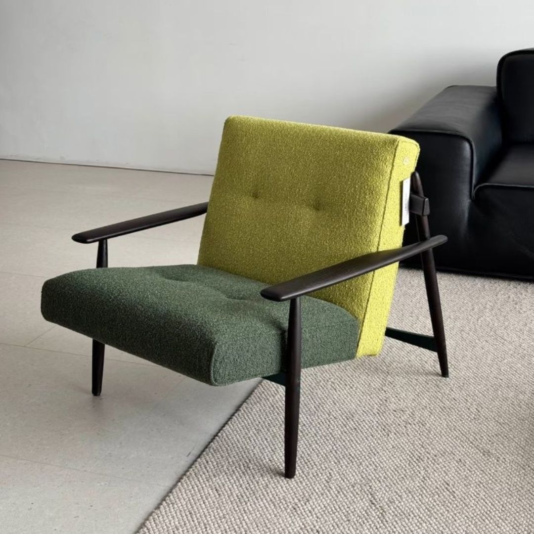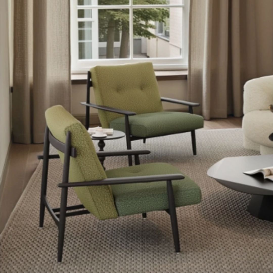 Ngoài ra, ghế thư giãn bọc vải còn ghi điểm nhờ khả năng phối hợp linh hoạt với các món nội thất khác. Ghế có thể kết hợp cùng bàn trà thấp, bàn cafe nhỏ, thảm trải sàn hoặc sofa dài để tạo nên tổng thể hài hòa. Màu sắc vải trung tính, khung gỗ trầm giúp ghế dễ dàng hòa vào nhiều phong cách nội thất khác nhau mà không cần thay đổi quá nhiều bố cục không gian.