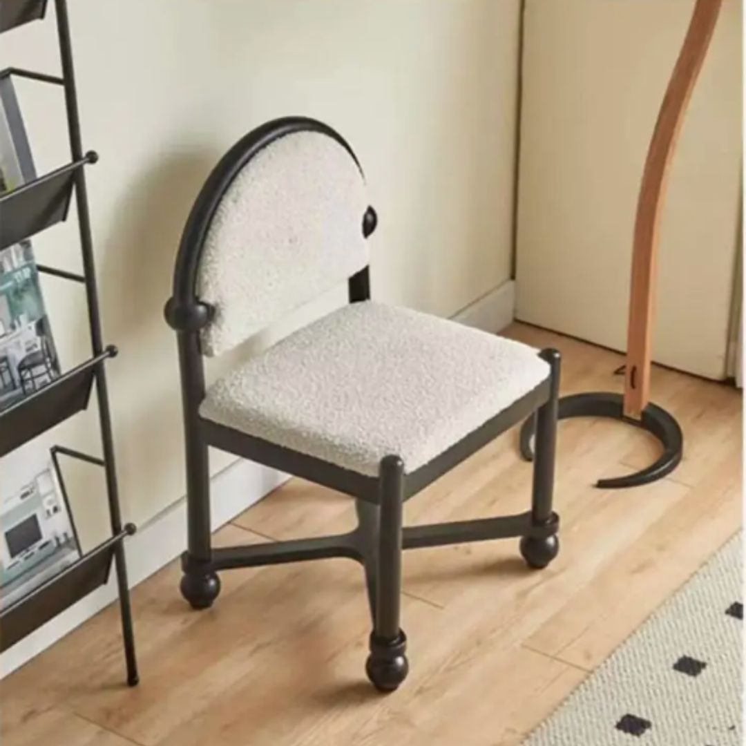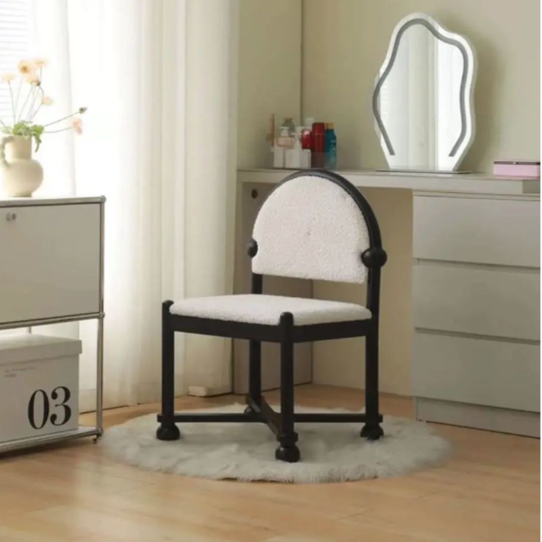 > Ghế Trang Điểm Gỗ Nguyên Khối Màu Kem, Dáng Gọn Nhẹ Cho Phòng Ngủ