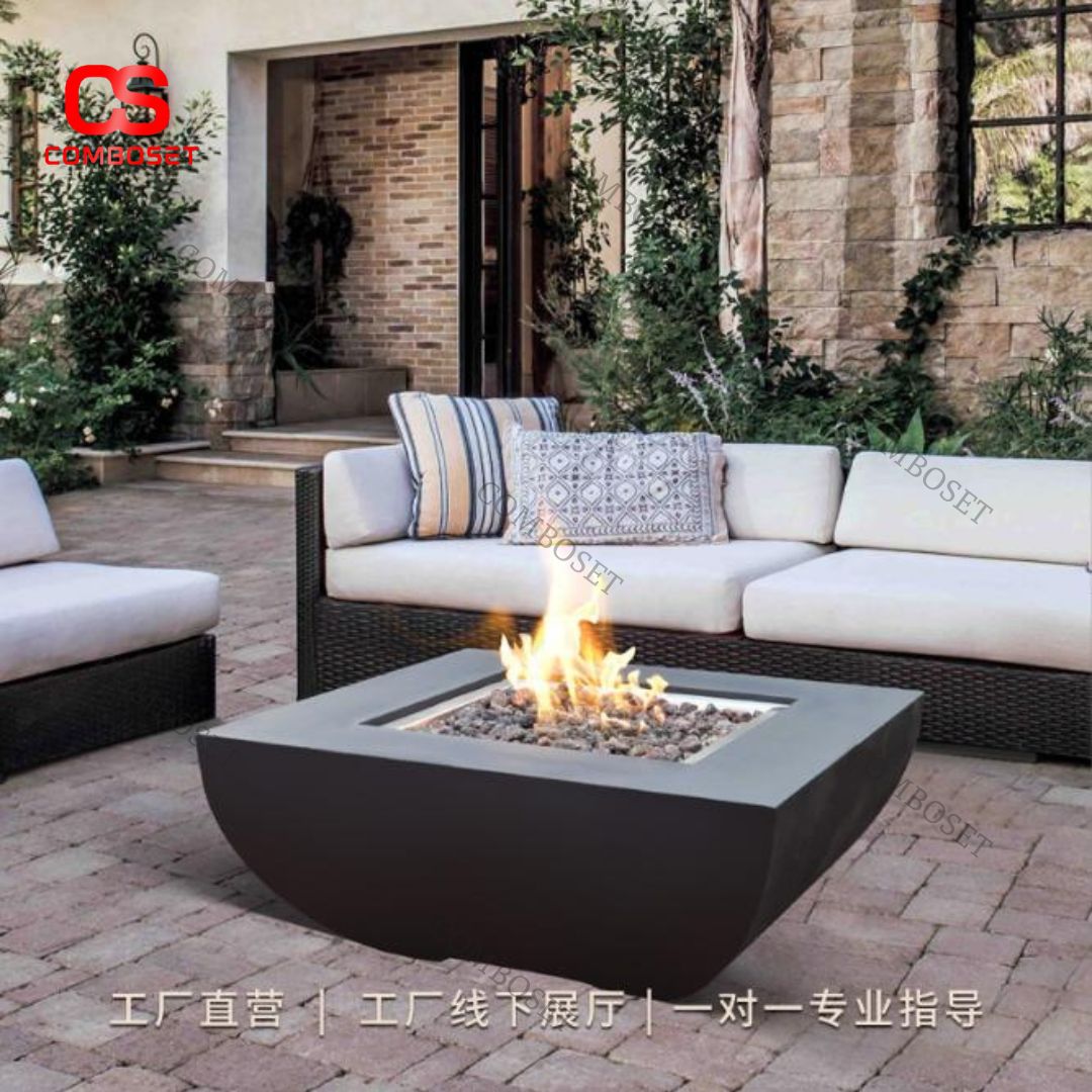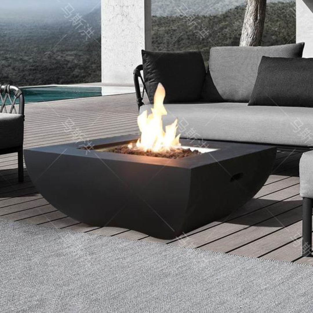 Thiết kế vuông còn mang lại cảm giác cân đối, hiện đại và dễ bố trí. Lò sưởi dạng bàn vuông ngoài trời có thể đặt giữa khu sofa, trước ghế băng dài hoặc tại khu lounge mà không phá vỡ tổng thể không gian. Chính sự linh hoạt này giúp sản phẩm trở thành lựa chọn lý tưởng cho các quán café sân thượng có diện tích đa dạng.