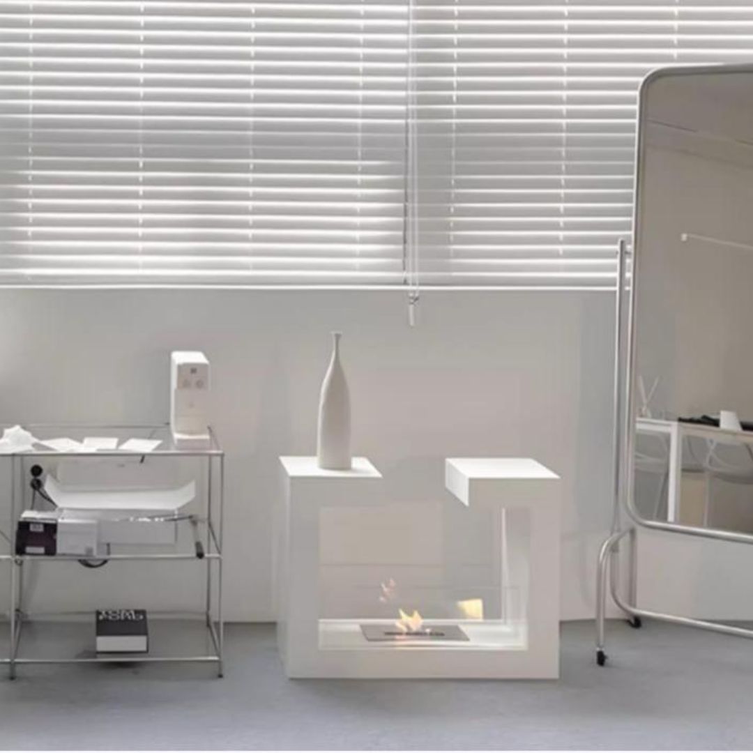 Lò sưởi dáng chữ U với khung kim loại đen – trắng mang đến vẻ đẹp tối giản nhưng đầy cuốn hút. Thiết kế hình khối cân đối kết hợp hiệu ứng lửa sống động tạo nên điểm nhấn tinh tế cho không gian. Sản phẩm phù hợp đặt tại phòng khách, quán cà phê hay khu vực tiếp khách, giúp tổng thể trở nên ấm áp, hiện đại và có chiều sâu hơn.
