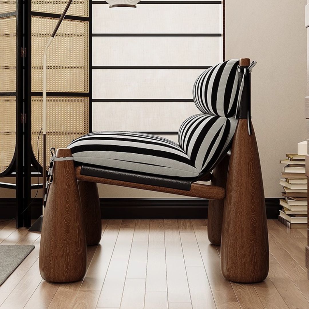 Sự kết hợp giữa khung gỗ tự nhiên chắc chắn và phần đệm sọc đen trắng ấn tượng giúp sofa kiểu bóng chày vừa mang nét cổ điển vừa đậm chất hiện đại. Đây không chỉ là một món nội thất – mà còn là một tác phẩm nghệ thuật ứng dụng trong không gian sống.Kiểu dáng ghế nhỏ gọn nhưng đầy đặn, thích hợp cho không gian vừa và nhỏ.