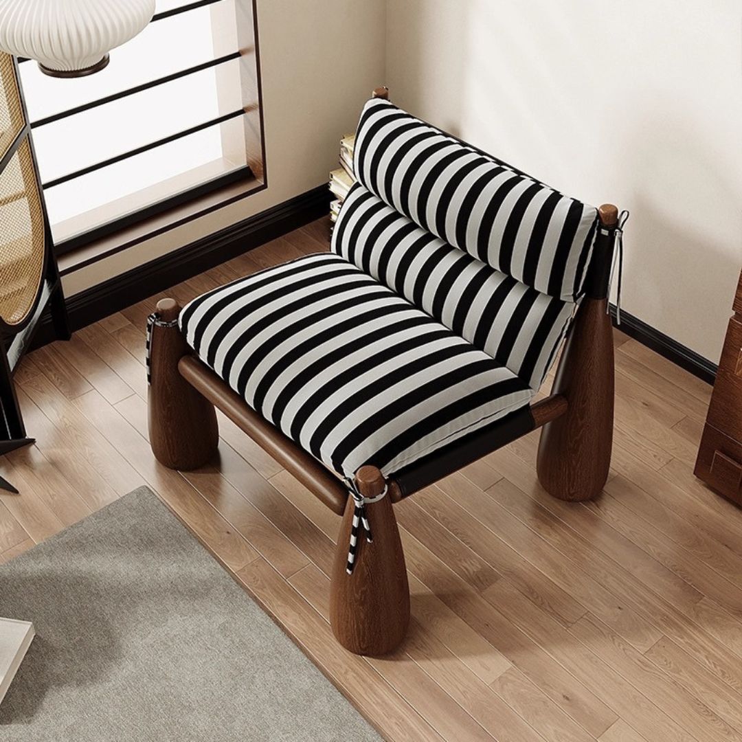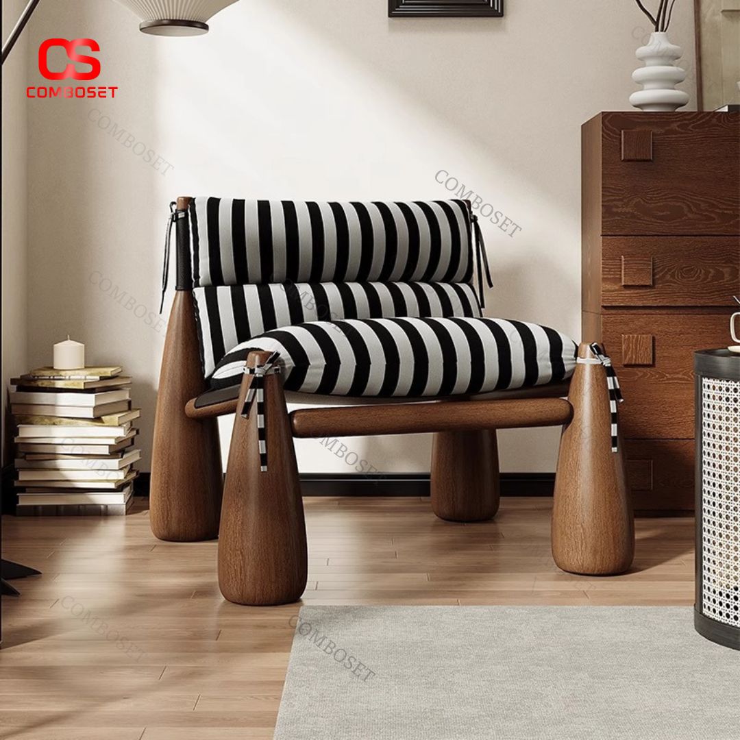 > Sofa Kiểu Bóng Chày Chân Gỗ Tự Nhiên, Đệm Sọc Đen Trắng, Ghế Decor Phòng Khách Hiện Đại